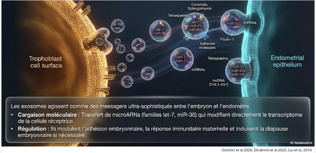 L’implantation embryonnaire repose sur un dialogue fin et dynamique entre l’embryon et l’endomètre. L’embryon, bien que doté de capacités intrinsèques de développement, constitue un élément semi-allogénique qui doit être reconnu et toléré par l’organisme maternel. Cette interaction repose sur une communication complexe impliquant des signaux précoces tels que l’hCG, des vésicules extracellulaires, ainsi que de nombreuses cytokines et chimiokines. L’endomètre, de son côté, doit être dans un état de réceptivité optimal, reposant sur un équilibre immunitaire subtil, notamment impliquant les cellules NK, mais aussi sur des facteurs vasculaires et du microbiote.